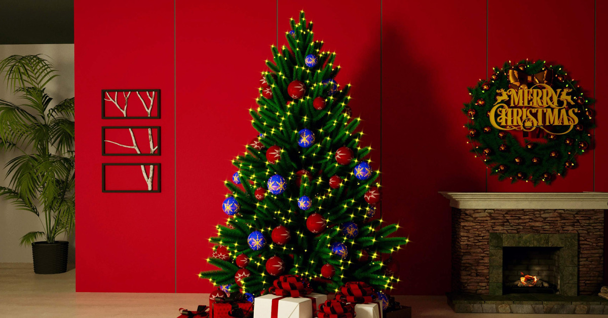 Christmas tree night lightning in house