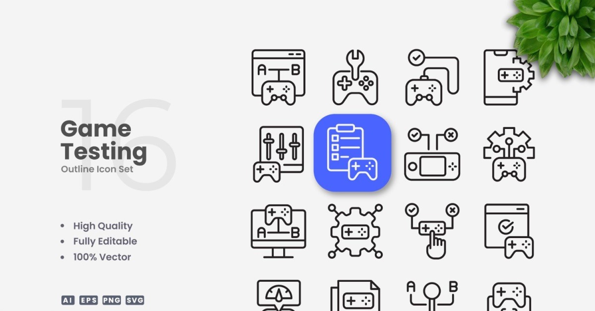 Set of 16 Game Testing Outline Icons | Simple and clean design, perfect for websites, mobile apps, books, social media, infographics, flyer, print, banners, posters and many more. To resize or change color you can easily edit on vector software like Adobe Illustrator and CorelDRAW. Features : High Quality Design100% Vector100% …